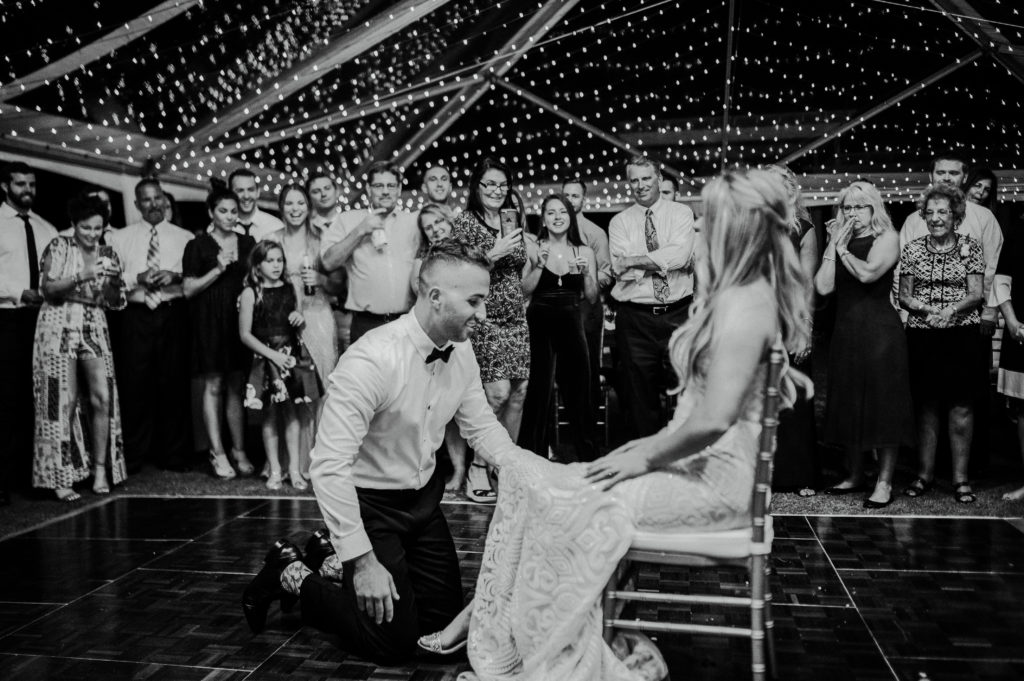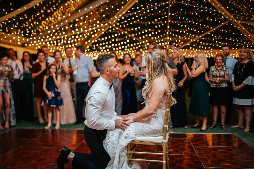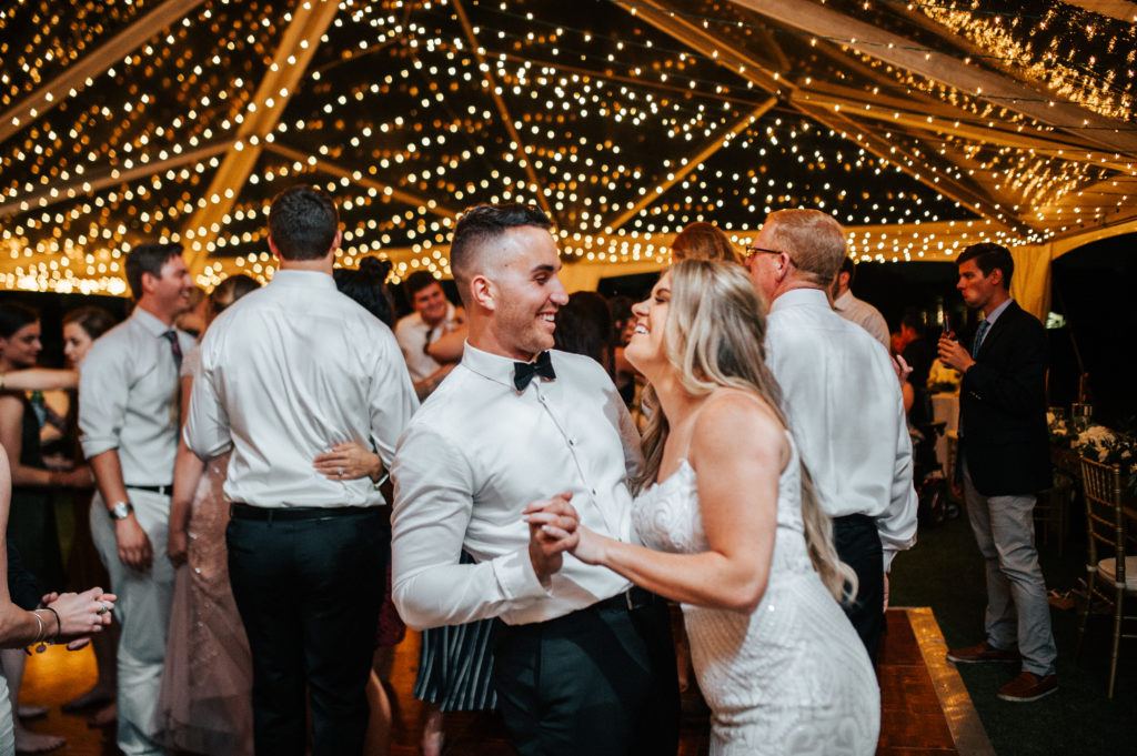 Are you in love with gorgeous market lighting? Do you want to step it up a notch? Our lighted canopy is guaranteed to take your breath away. You can dance the night away under what feels like your own constellation of stars. That’s exactly what Lon and Sydney did at their wedding, where we provided canopy lighting and DJ services.